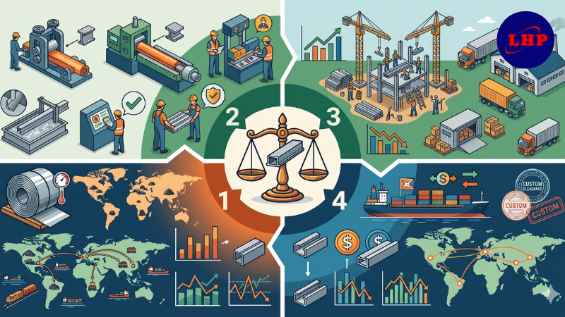 - Giá nguyên liệu thép thế giới: Đây là yếu tố then chốt nhất. Giá phôi thép, quặng sắt trên thị trường quốc tế biến động sẽ trực tiếp kéo theo sự thay đổi của giá thành phẩm thép trong nước, bao gồm cả thép hộp 40×80.